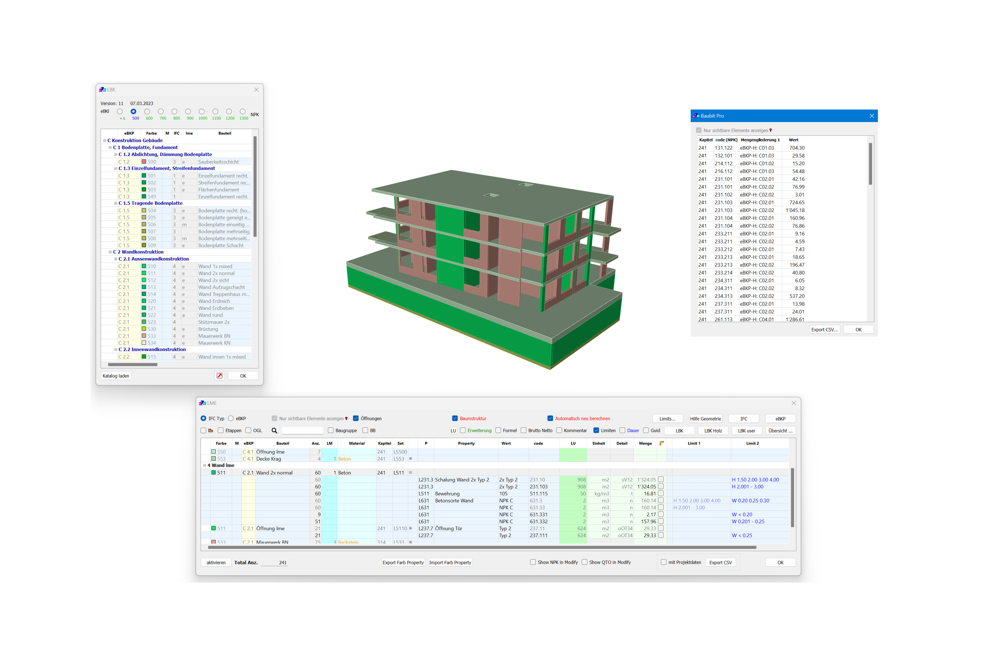 Mit dem individualisierbaren Lexocad Bauteilkatalog (LBK) können Mengen automatisiert ermittelt werden, um z.B. ein Leistungsverzeichnis nach NPK zu erstellen. Den Lexocad Bauteilkatalog können Sie so aufsetzen, dass die Mengen nach Ihrem Bedürfnis automatisiert ermittelt werden.
