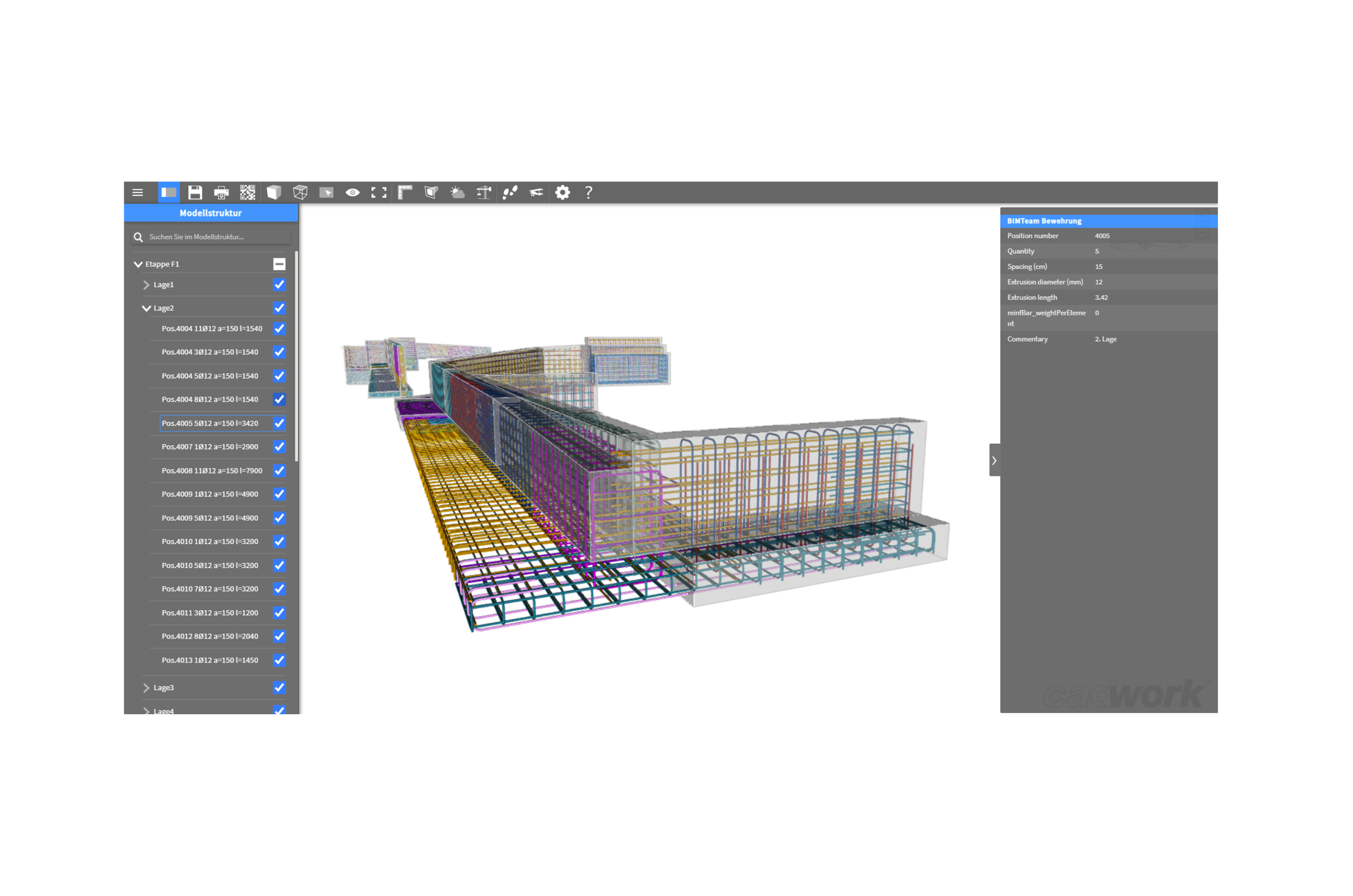 Finden Sie per Knopfklick die relevanten Elemente für Ihren Arbeitsschritt und verschaffen Sie sich schnell einen Überblick über die Gegebenheiten des Bauwerks. Visualisieren Sie zum Beispiel die Elemente eines Geschosses, eines bestimmten Schalungstypen oder alle Elemente der gleichen Betonsorte.