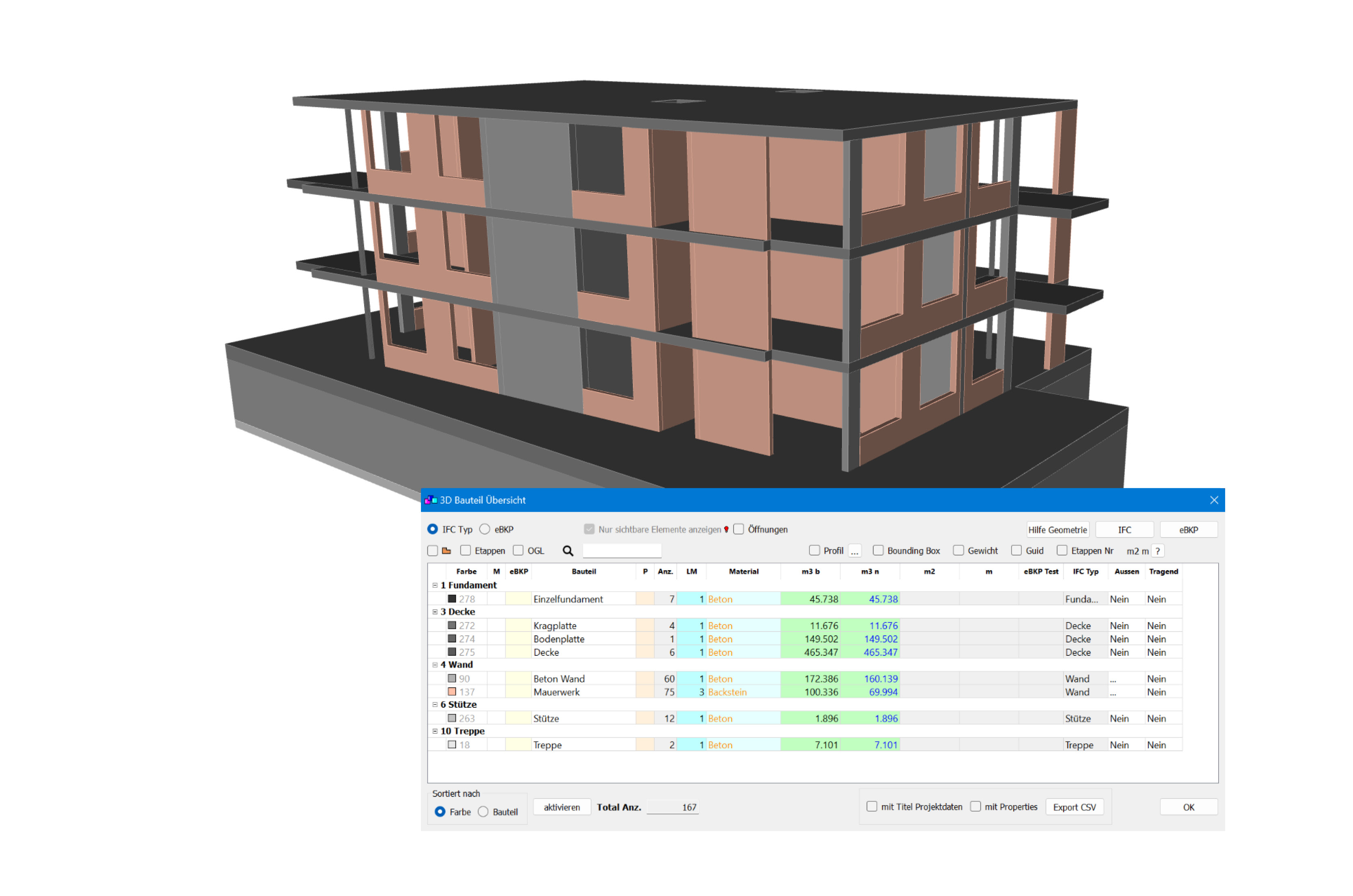 Falls ein IFC-Modell importiert wurde, bestehen diverse Bereinigungsfunktionen, um sicherzustellen, dass die ermittelten Mengen auch korrekt sind.