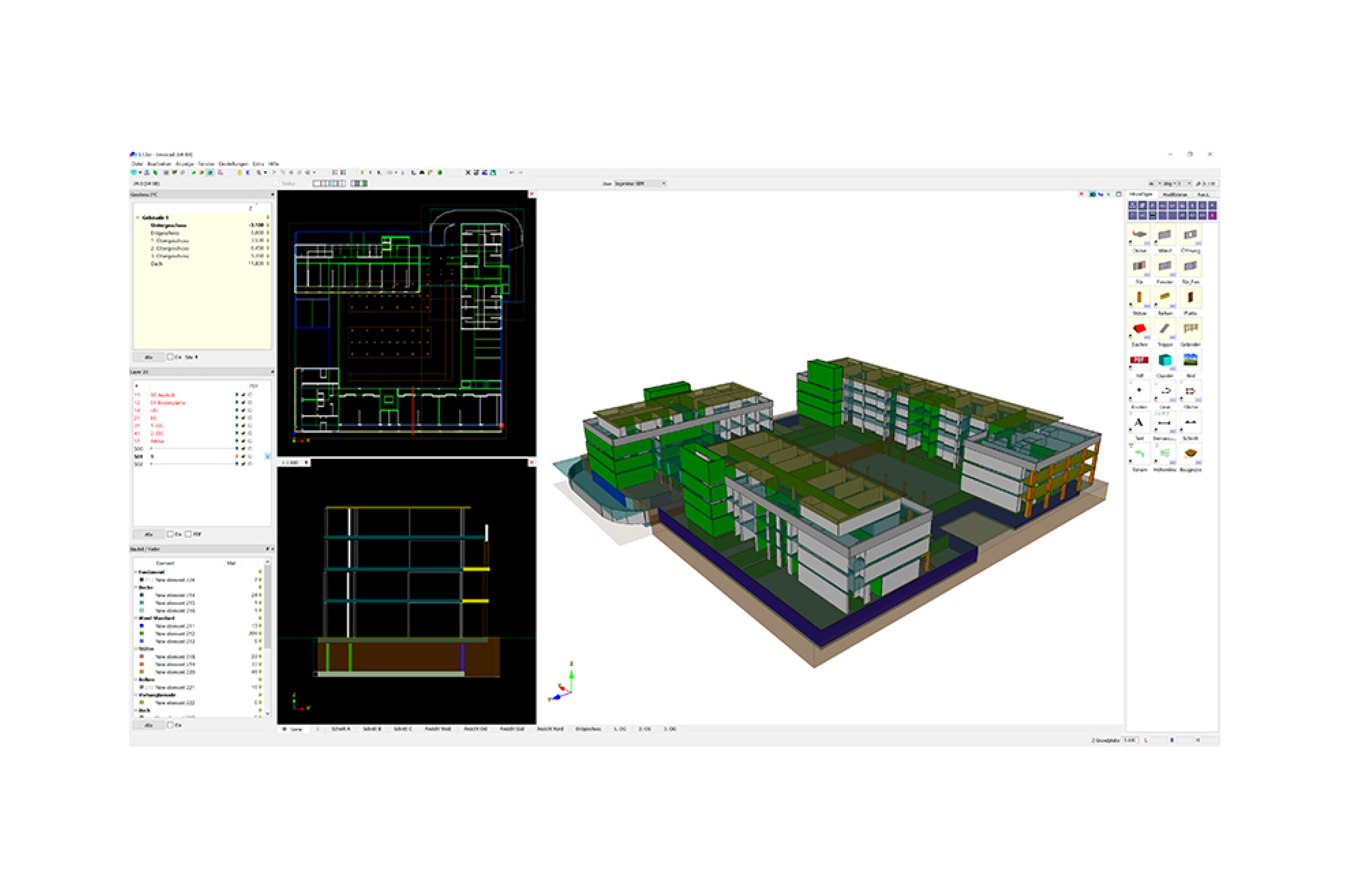 Mit Lexocad können Bauwerke modelliert werden. Es können PDF-Pläne importiert werden, um z.B. ein Gebäude in 3D mit den Modellierungsfunktionen von Lexocad schnell und unkompliziert zu erstellen.